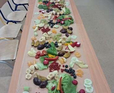 W tym dniu dzieci zapoznały się z różnymi gatunkami owoców i warzyw oraz dowiedziały się, że warzywa i owoce są bardzo cenne, ponieważ zawierają wiele witamin i minerałów, które są potrzebne dla naszej diety. Dzieci zakupiły bileciki i wybrały się do restauracja "Wesoła biedronka", w której czekała na dzieci zdrowa i pyszna uczta. Każdy przedszkolaczek mógł spróbować różnych owoców oraz warzyw.