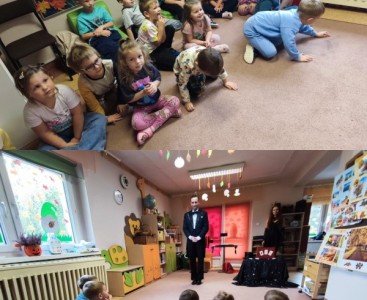 W czwartek 25 września nasze przedszkole odwiedził Iluzjonista, który przeniósł przedszkolaki do wspaniałego świata iluzji, humoru i oczywiście dobrej rozrywki. Nasze Żabki z chęcią pomagały mistrzowi w jego pokazie i wykonywały sztuczki wykorzystując różne rekwizyty. Kto wie? Może ktoś z nas w przyszłości również będzie czarować...